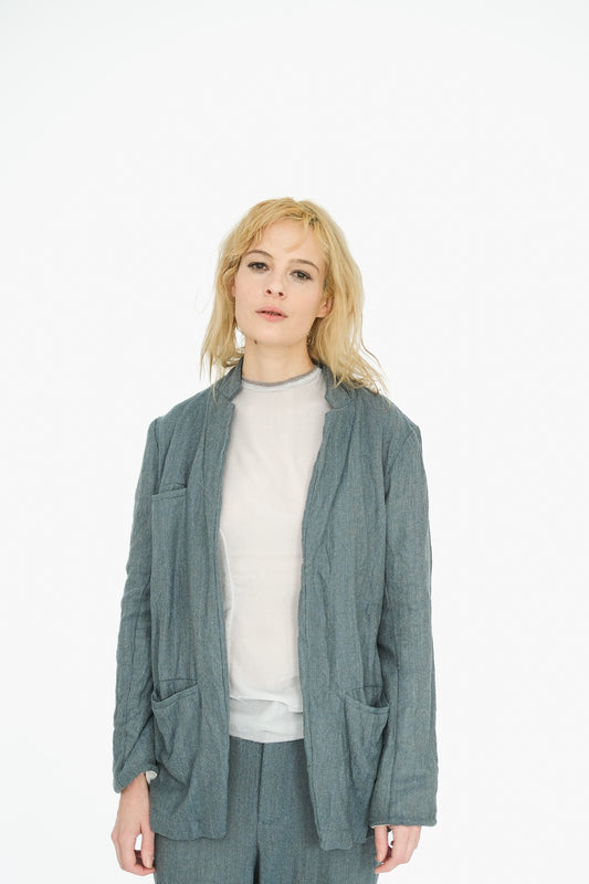 Belted Japanese Ghost Wool Jacket, Blue MelangeRegular price $ 380.00 USDRegular priceUnit price per$ 731.00 USDSale price $ 380.00 USDSale
