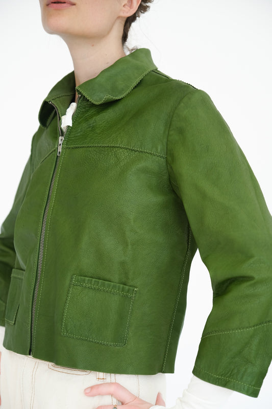 Little Leather Jacket, Sunny GreenRegular price $ 525.00 USDRegular priceUnit price per$ 875.00 USDSale price $ 525.00 USDSale