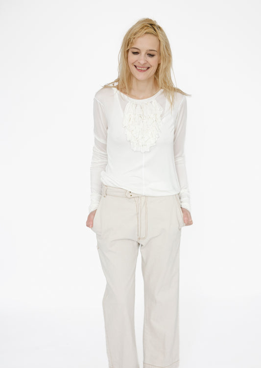 Silk Knit T-Shirt with Ruffles, IvoryRegular price $ 195.00 USDRegular priceUnit price per$ 325.00 USDSale price $ 195.00 USDSale