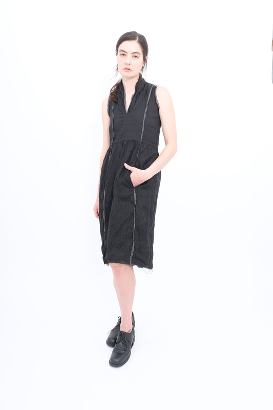 Sleeveless Dress in Linen with Silk Lining and Trim- BlackRegular price $ 434.00 USDRegular priceUnit price per$ 667.00 USDSale price $ 434.00 USDSale